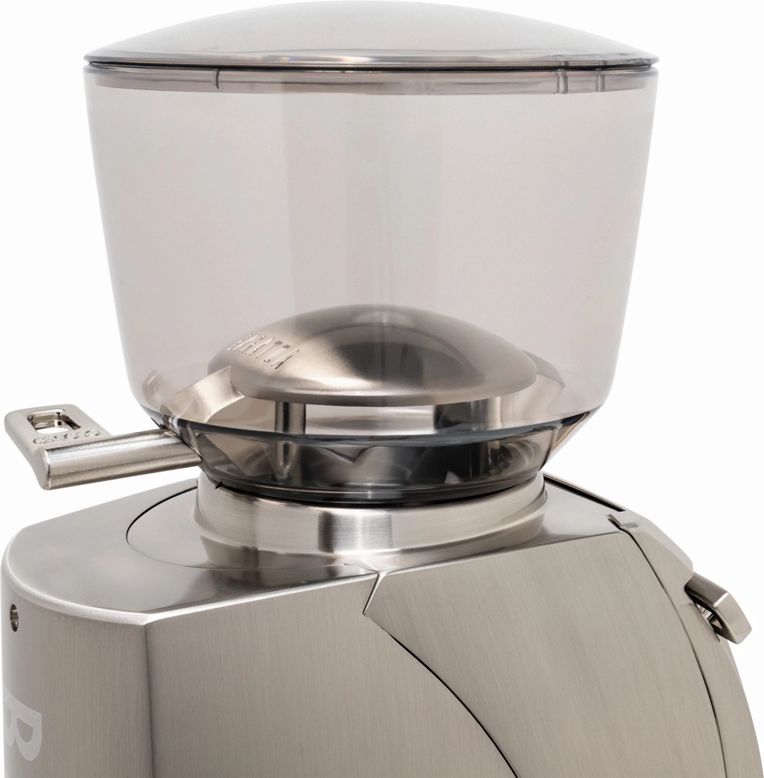 The hopper holds approximately 300g of coffee. An innovative bean shutoff feature in the collar permits no-mess, no-fuss hopper removal for changing out beans. Bean ‘waste – (below the stopper) averages a surprisingly low 10g, once the hopper has been shut off (all weights are bean density dependent). A hopper extension is available that can add an additional 250g of capacity.