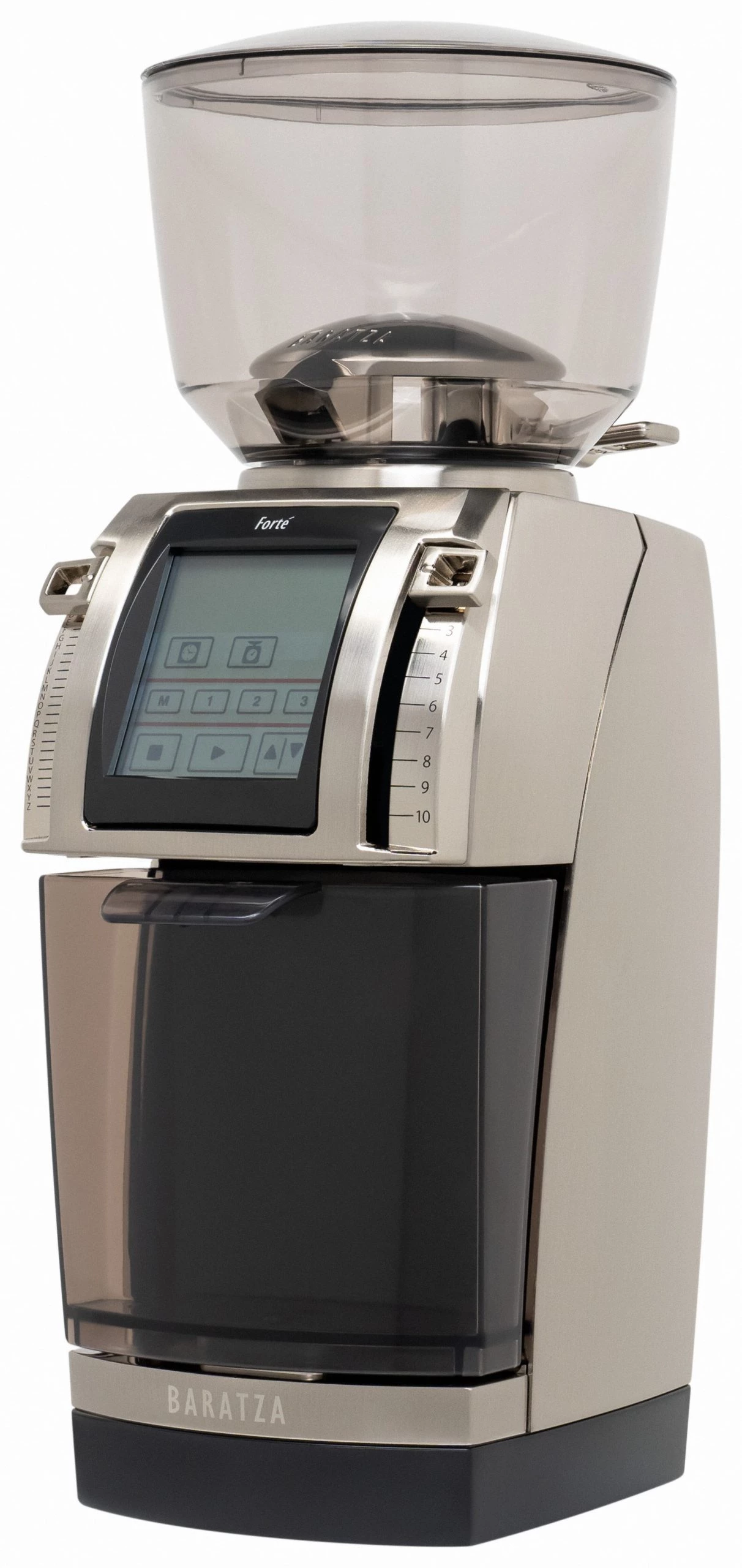The Forte-AP grinder comes with 54mm ceramic flat burrs for accurate and precise grinding. The Forte-AP grinds at an average of 2.0g/sec for espresso and 3.5 to 3.7g/sec for press pot. The range of grind is 230 to 1150 microns.