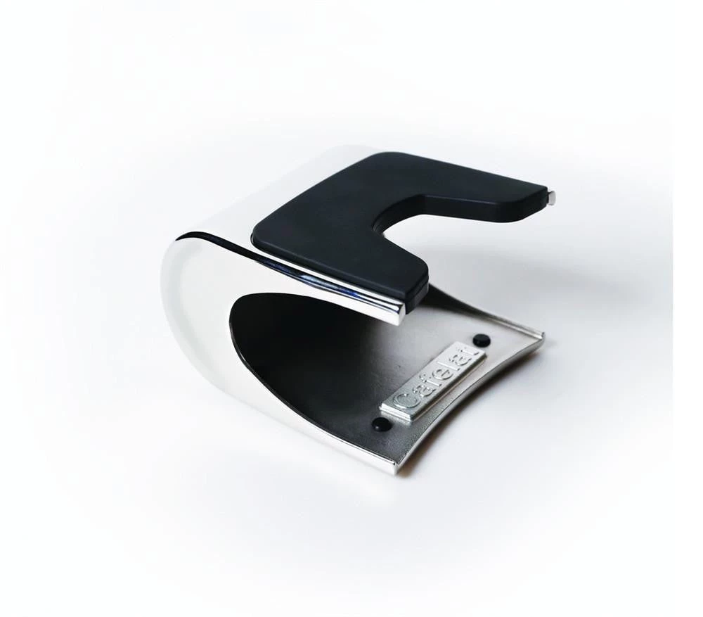 This stand is made from solid 304 stainless steel, and is 50% extra heavier than the previous Cafelat tamping stand. It weighs around 600g or 1lb5oz! The top and bottom feature durable rubber pads.