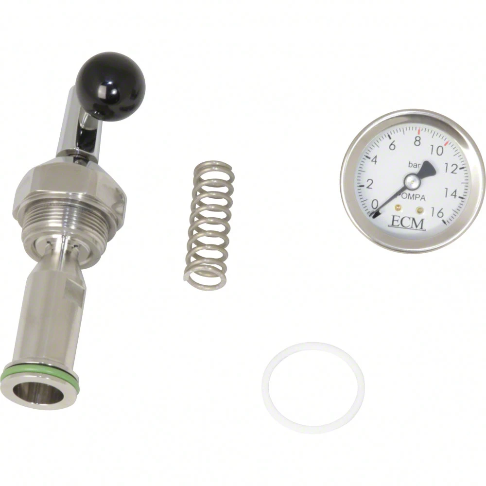 Similar to ECM’s existing mushroom, the flow control device is made from stainless steel to resist corrosion. The resulting changes in pressure are reflected by an included gauge which installs on the front of the group. The E61 Flow Control Device can be installed on any ECM Espresso machine with an E61 brew group.