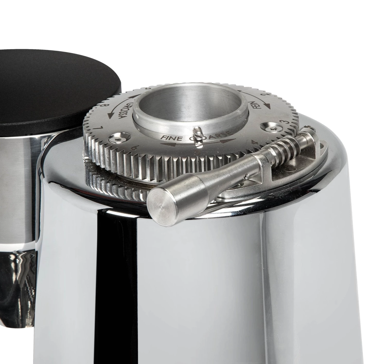 The Titan V takes classic espresso design and mixes it with German engineering to create a grinder that will beautifully grind espresso as you would find in an Italian cafe at home. A stepless adjuster and a timer that grinds to the tenth of a second make using this grinder a breeze for truly customizable shots.