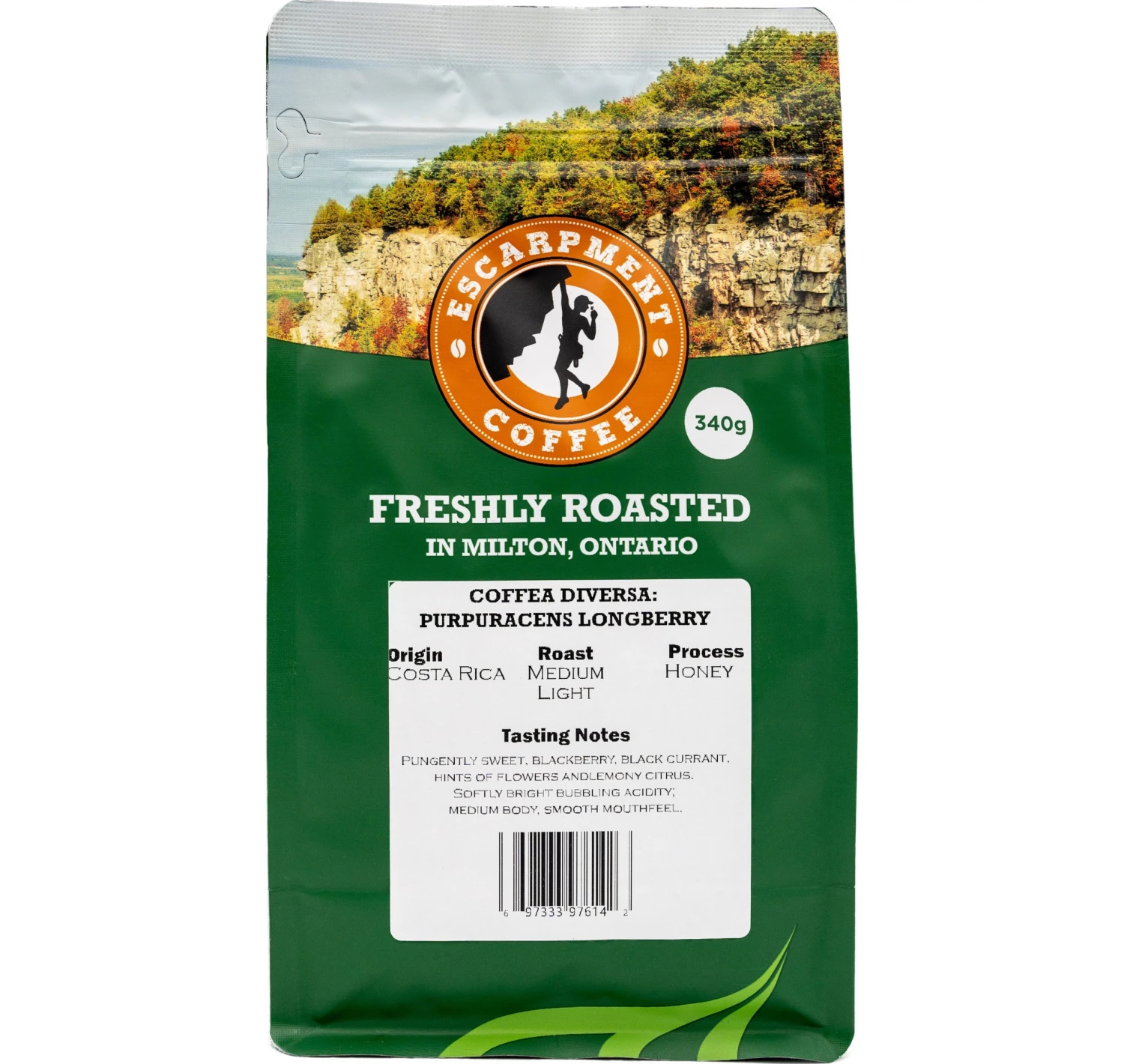 The Purpuracens Longberry’s flavour is pungently sweet. Crisp fruit dominates the profile: blackberry, black currant, hints of flowers and lemony citrus. Softly bright bubbling acidity; medium body, smooth mouthfeel. A clean and rich cup that finishes with a distinct flavour persistence: berry, lemon, flowers. This variety gets its name from its purple-coloured foilage.