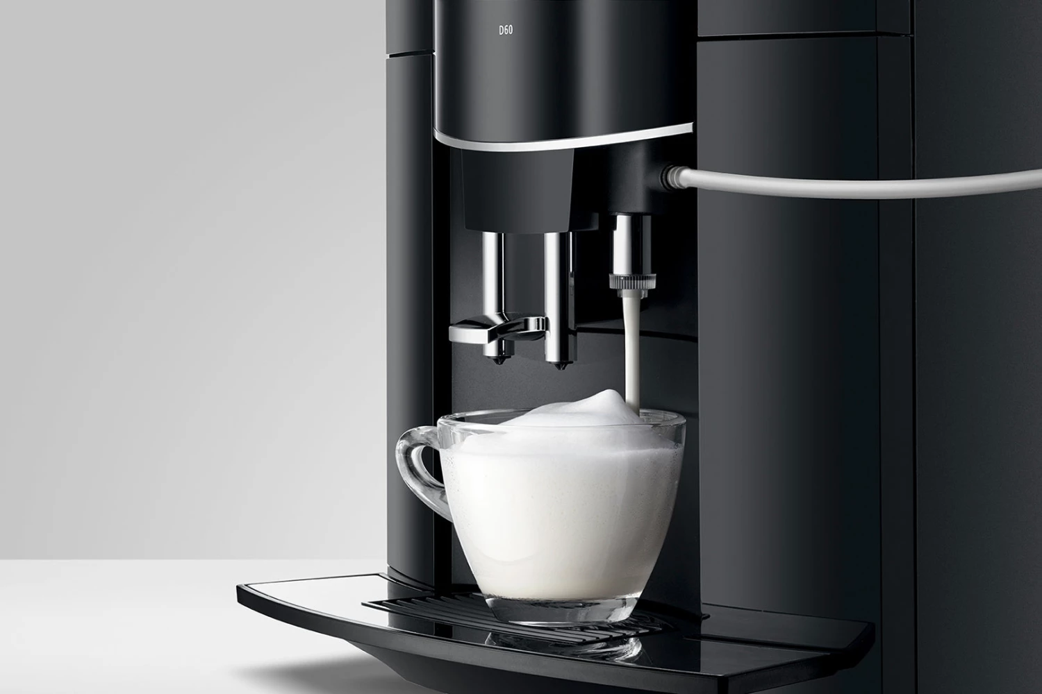 Ultra-quick and self-explanatory, the D6 creates the perfect coffee in no time thanks to an intuitive plain text display and the Easy Cappuccino system with rotary switch. The D6 is a reinterpretation of classic design with sophisticated details. The technically and ergonomically optimised Easy Cappuccino system tops off speciality coffees with milk like cappuccino with temptingly fine, light-as-air milk foam.