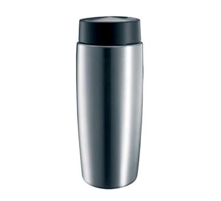 The elegantly shaped, stainless steel vacuum milk container is a practical addition for all lovers of milk specialities.