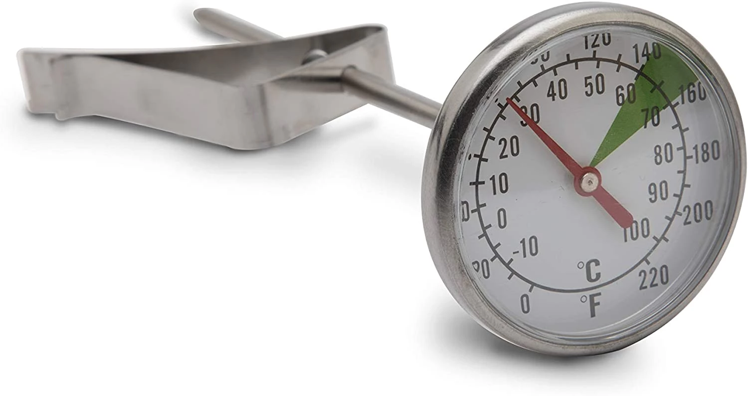 With the Lelit stainless steel thermometer you can keep your milk at the perfect temperature for the perfect drink. Both Celsius (-10°C to 100°C) and Fahrenheit (0F to 220F) are displayed on the dial.
