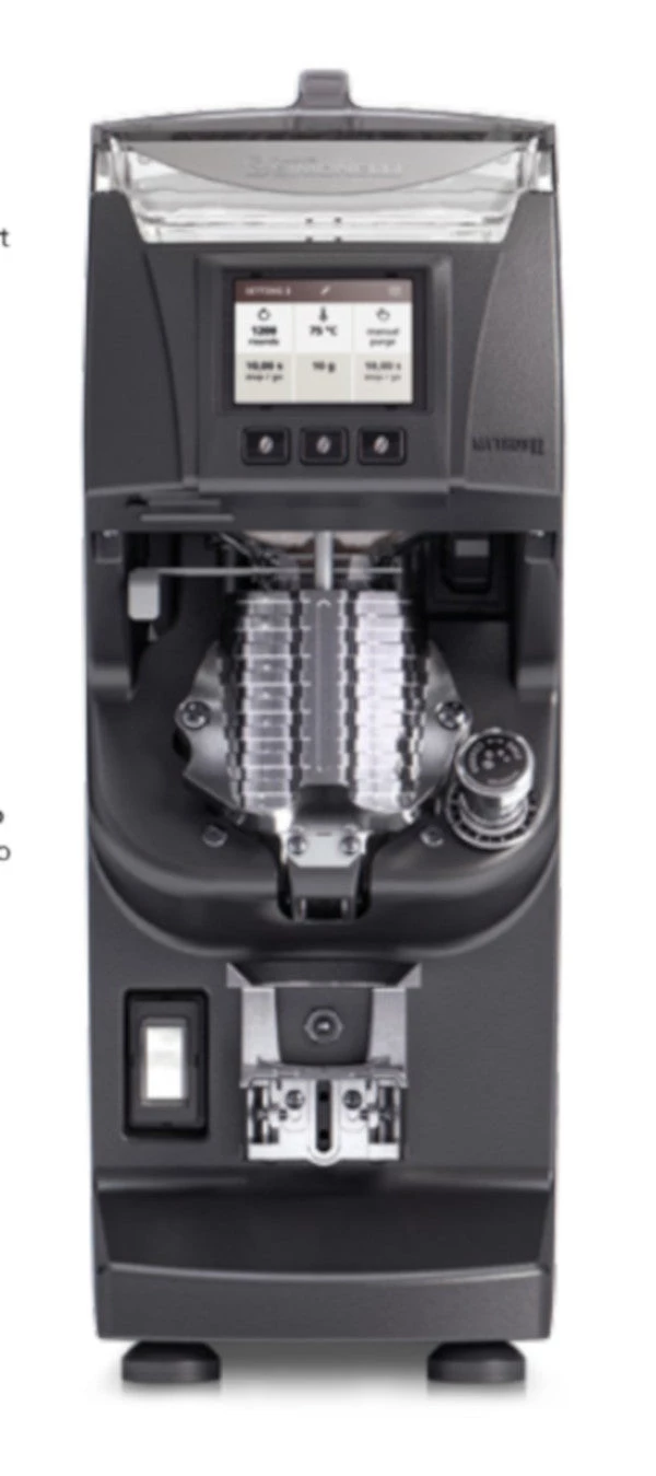 Mythos II introduces gravimetric dosing. This means the grinder doses the ground coffee by weight in real time. Eliminating the need for a scale and reducing coffee wast. This feature can also be turned off via the setting to dose using time.