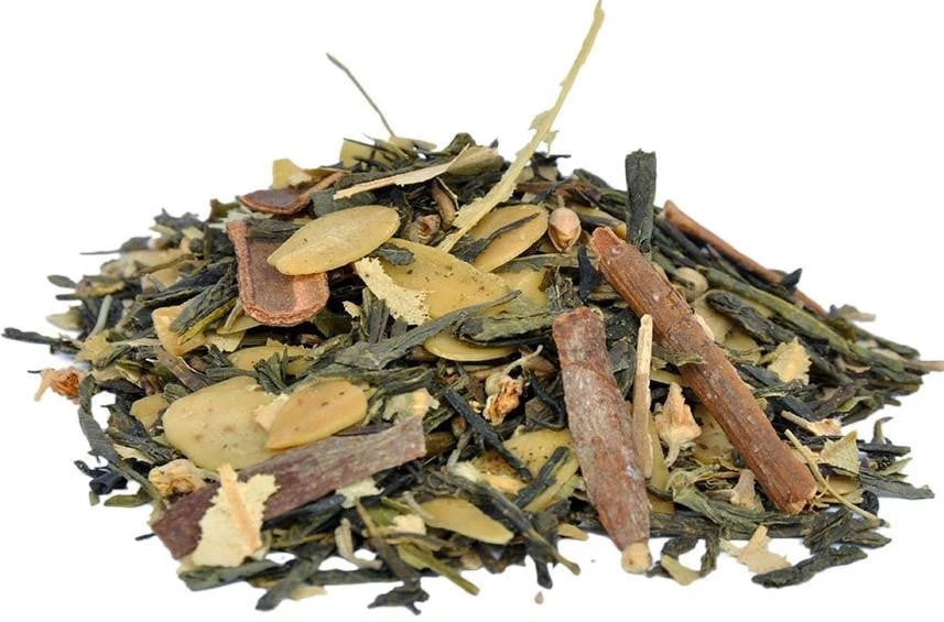 Full bodied nutty flavours give this green tea its award winning taste. One of our favourite blends. True top quality green tea taste with a soothing and well-rounded flavour profile. Ingredients: Green tea, almonds, lime blossoms, cinnamon, natural flavours.