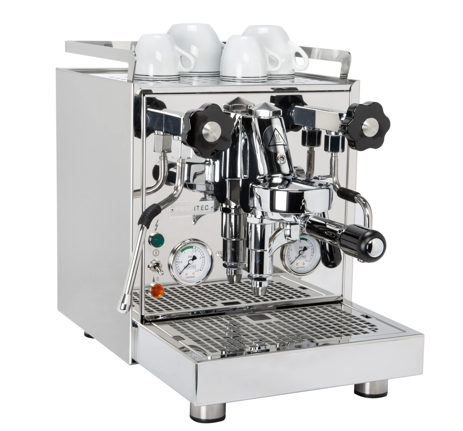 The Profitec 500 w/pid is the latest upgrade to Profitec’s popular Pro 500 Heat Exchanger espresso machine. It features an E61 group head, PID controller, a vibratory pump, stainless steel boiler, double wall steam and hot water arms and beautiful stainless steel finish.