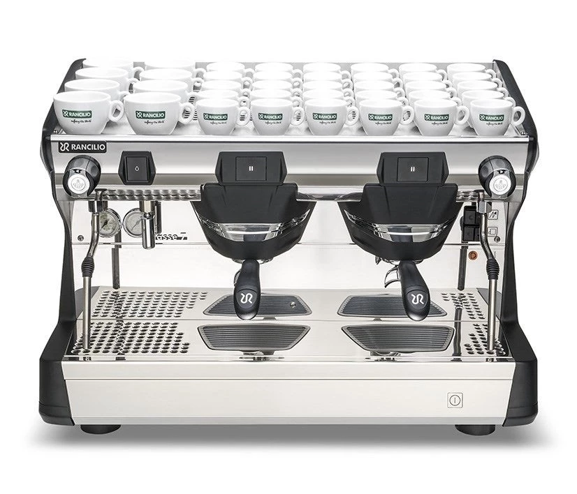 The machine has a hot water dispenser with programmable time-controlled dosing. Classe 7 has an ergonomic lighting system in the work area to make the barista’s job easier plus chrome group covers and all the distinctive stylish accessories from the Rancilio range