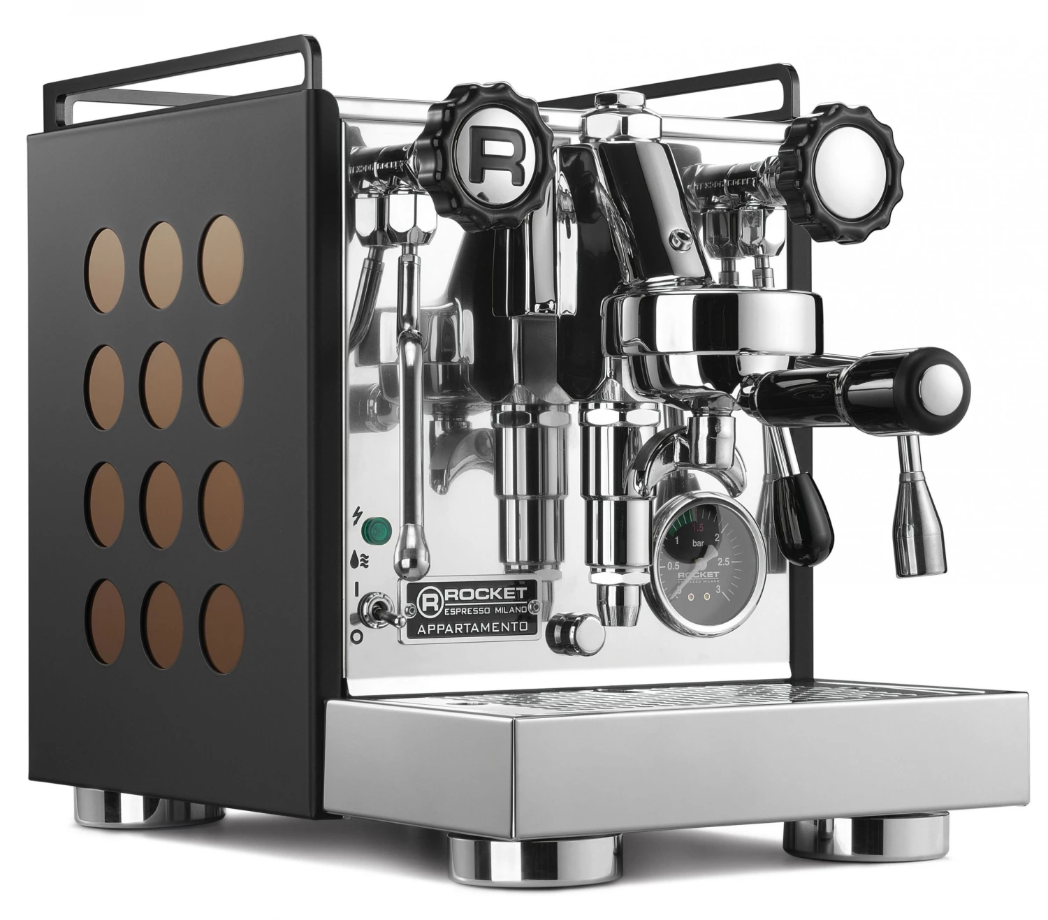 The Rocket Appartamento is a compact, conventional heat exchanger espresso machine designed for environments where space is at a premium.