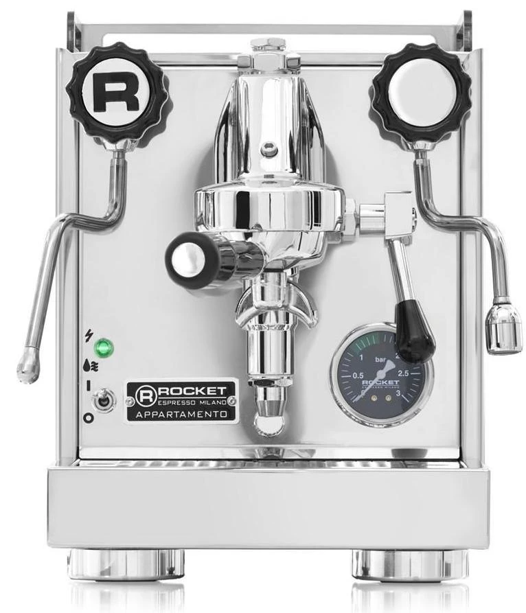 The Rocket Appartamento is a compact, conventional heat exchanger espresso machine designed for environments where space is at a premium.