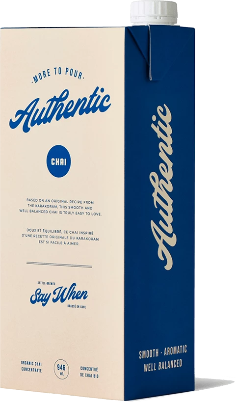 Say Whenβs focus is to deliver the most authentic chai experience in the most convenient and environmentally conscious way possible. Thatβs why Say When chai is handcrafted with real whole organic spices the old fashioned way, and then reduced to a 3:1 concentration. Enjoy perfectly spiced chai in every feel-good cup!