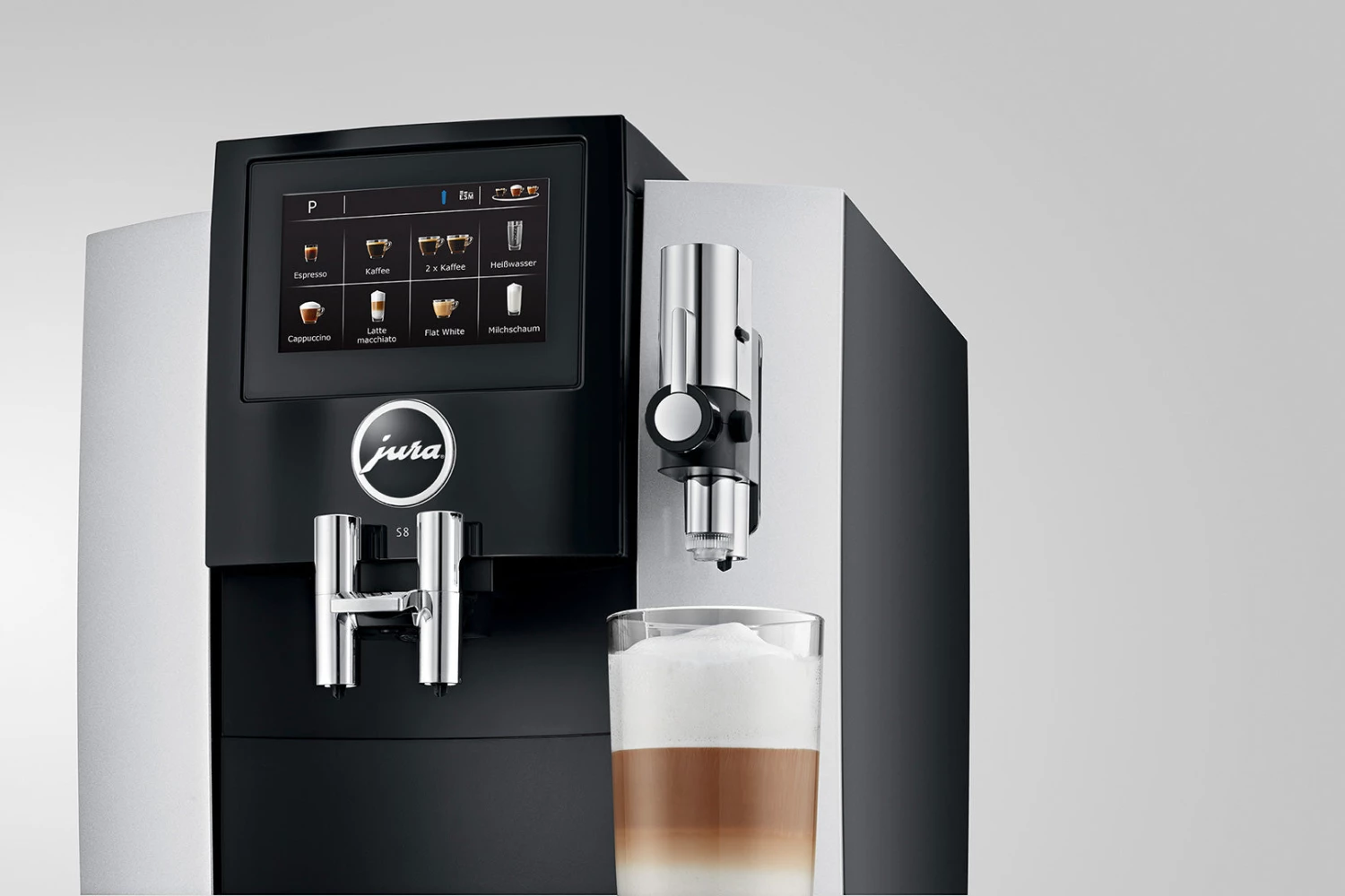 Characteristic JURA design reflects precision and quality down to the smallest detail. The new professional fine foam frother on the S8 is made from the highest quality materials and has a stunning look and feel. Specially designed for the preparation of speciality coffees with milk and milk foam, it makes latte macchiato and other beverages with the very best fine-textured foam ‘ every time. Graphics and modern animations on the display make it easier than ever to use.