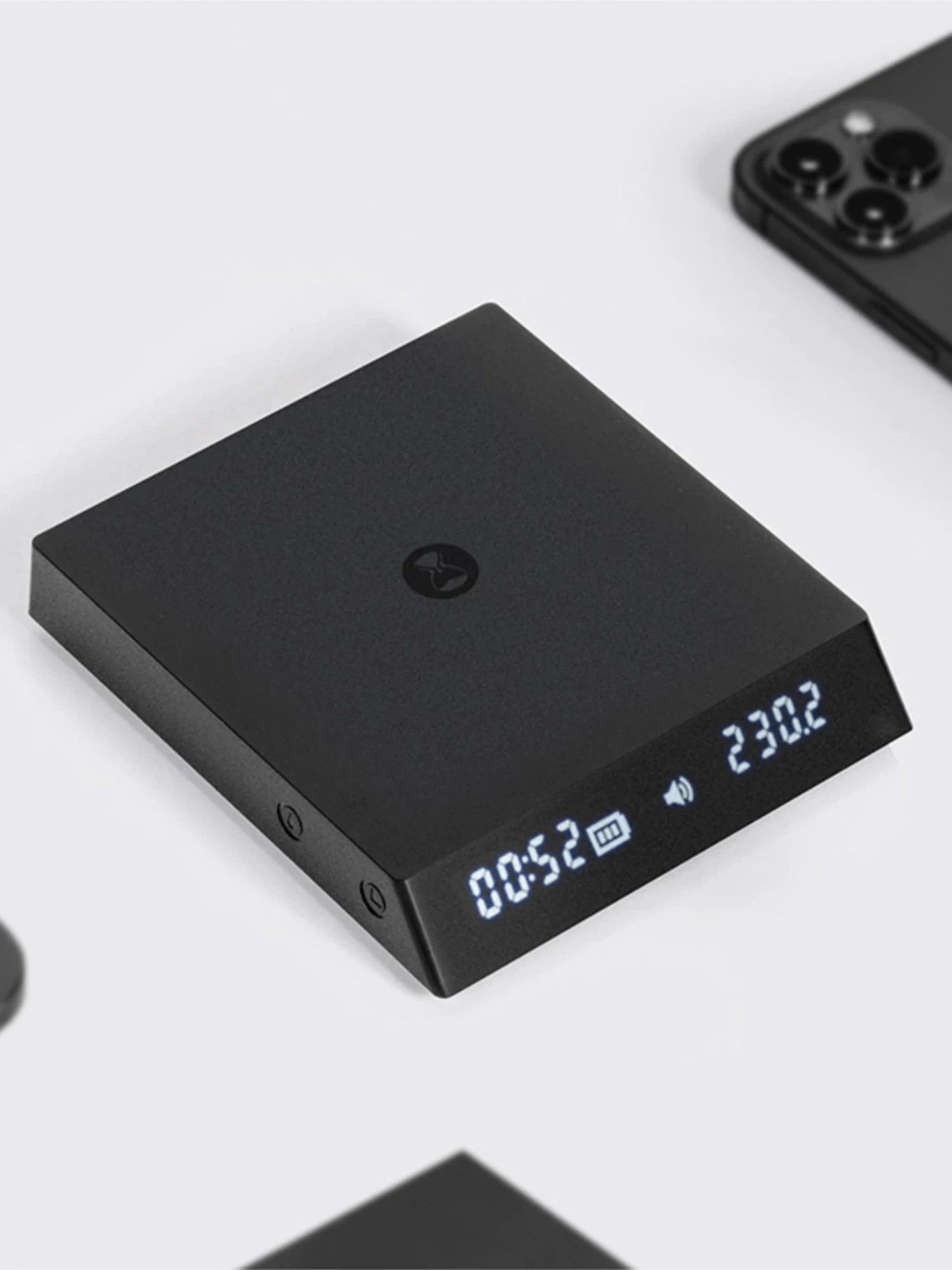 The Timemore Black Mirror Nano scale features advanced features, including auto-timing, flow-rate tracking and auto-taring. Under 250g in weight and pocket size, it can detect weights from 0.1g to 2kg, charging via USB-C and comes with sensible, physical buttons.