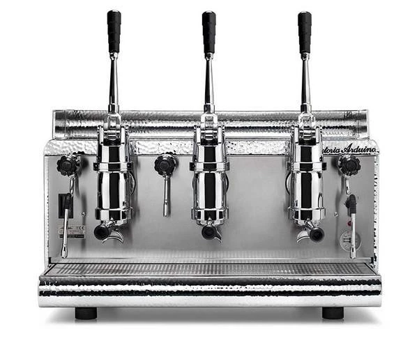 The lever system of this professional coffee machine lets the barista modulate the pre-infusion manually
